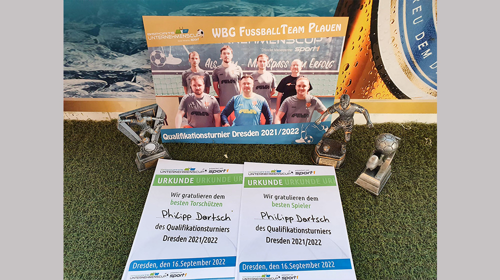 Am 16.09.22 spielte das WbG Team zum 5.Mal bei der sächsischen Unternehmensmeisterschaft. Die Erfolgskette der letzten Turniere wurde fortgesetzt. Nachdem die Mannschaft drei Mal Platz vier und einmal Platz fünf errang, erkämpften sie dieses Jahr den 3.Platz.